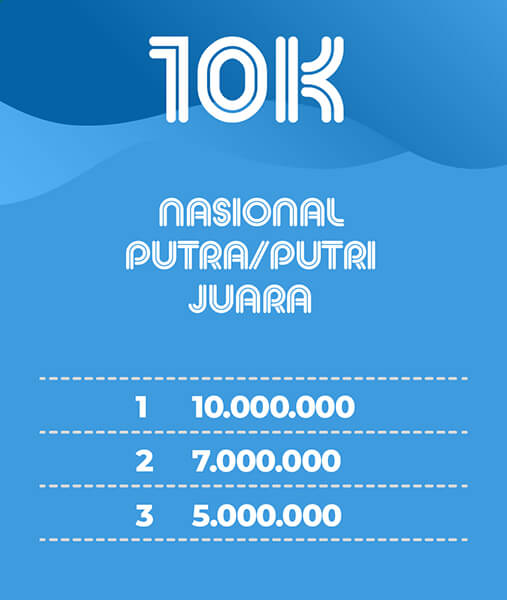 • 10K Kompetisi, terbuka bagi pelari perorangan Nasional