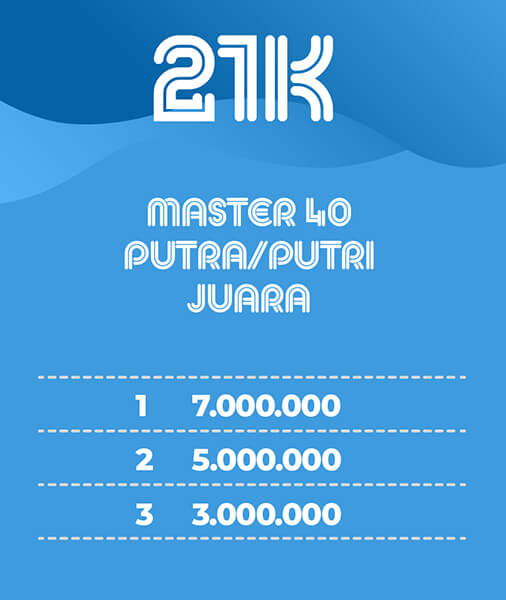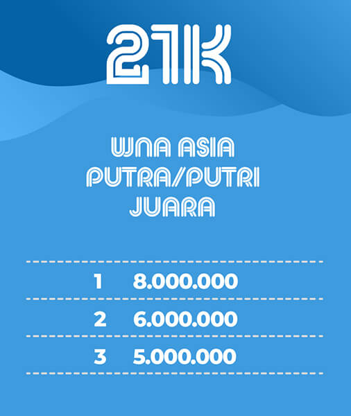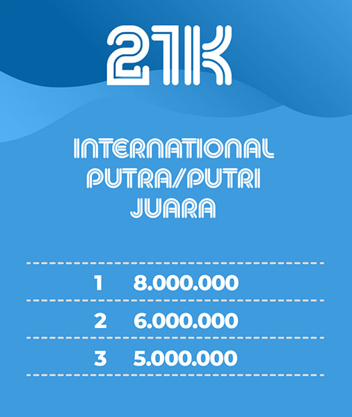 • 21K, terbuka bagi pelari perorangan Internasional, Nasional dan Master Nasional (berusia 40 tahun ke atas)